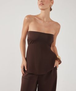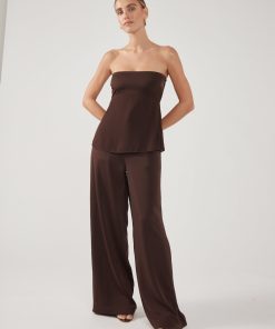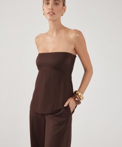 Women’s Matching Sets Perfect Stranger Ellie Strapless Satin Top Brown