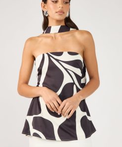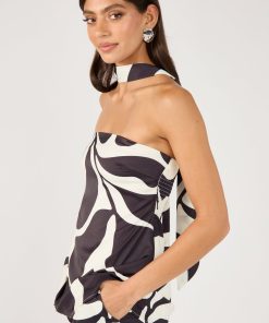 Women’s Matching Sets Perfect Stranger Remini Strapless Scarf Top Black Print