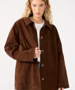 Women’s Outerwear Perfect Stranger Raven Pu Suede Long Line Jacket Brown